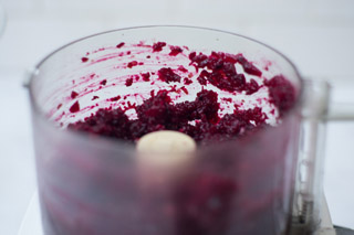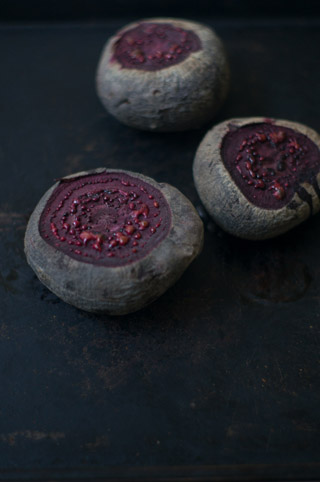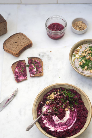 Once this was sorted, Josey got on with his afternoon, and I started thinking about what I'd eventually put on the bread. Silvena Rowe's book had been in my bag for a few days, I was reading it when I was on the bus, or waiting on a coffee. So I started paging through, and settled on a beet spread I knew would be beautiful - the sweet earthiness of the roasted beets accented with toasted walnuts